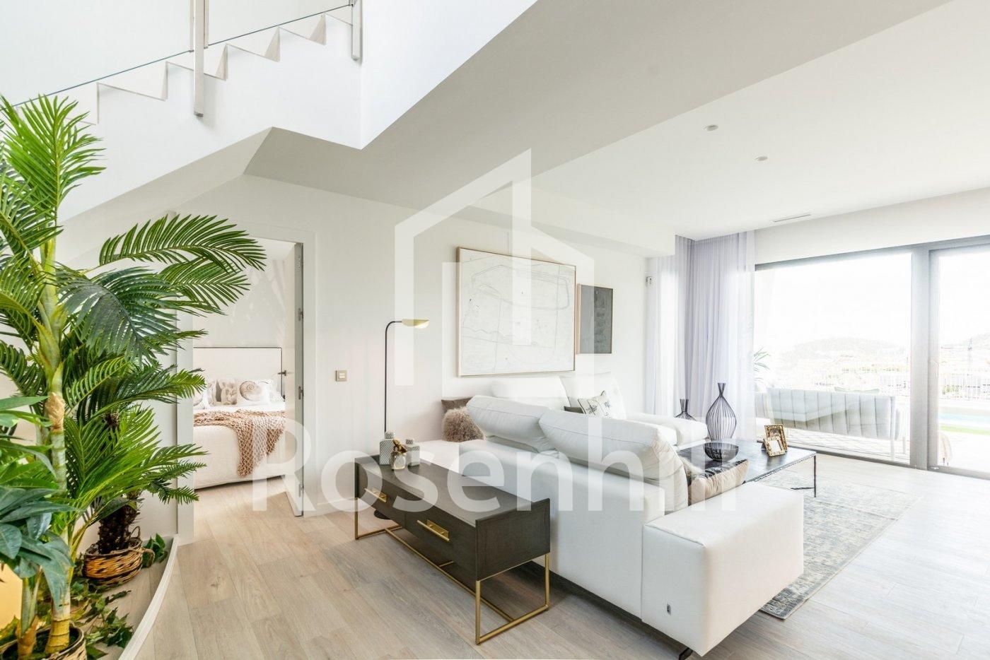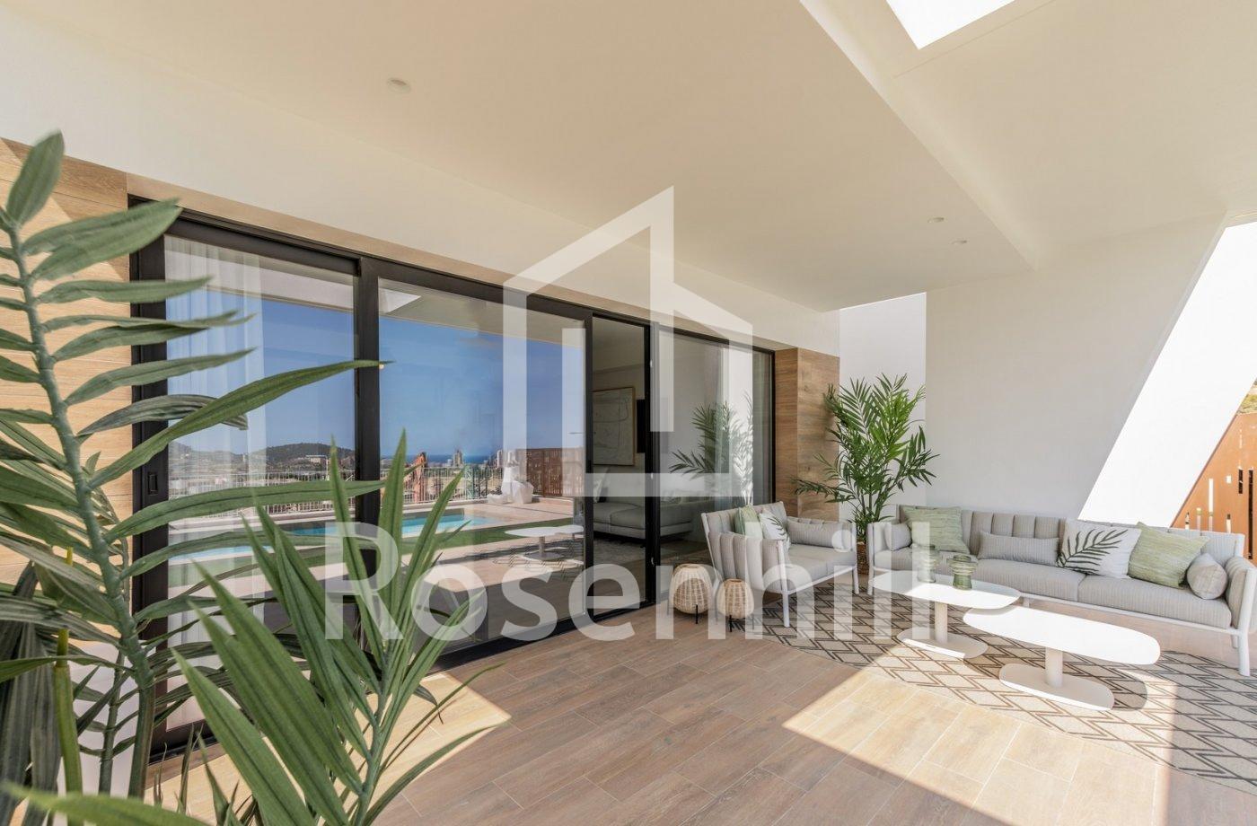 NEW BUILD VILLAS WITH PRIVATE POOL AND GUEST HOUSE New Build an exclusive residential complex of villas located in Finestrat close to the marvellous beaches of Benidorm. New model of beautiful villa with a guest house on the plot. There are 17 villas of this type for sale. The villa is built on two floors. On the ground floor, there is a bright living room, with large windows and direct access to the pool and garden, bedroom and bathroom. On the first floor, there are two suite-style rooms, with access to an open terrace. A guest house is built on one level, consisting of a bedroom and a bathroom, in addition to this, there is a cozy terrace with access to the main villa, pool and garden. Residential located 5 min by car from all the services that Benidorm can offer and in an environment with an average annual temperature of 20ºC and 300 days of sunshine a year, 44 km away from Alicante airport, 3 km from the sea and 200 meters to the golf.