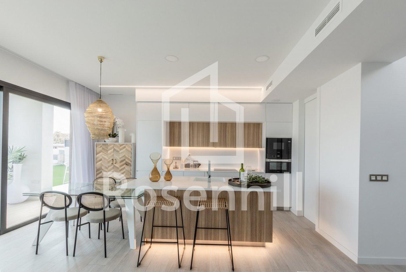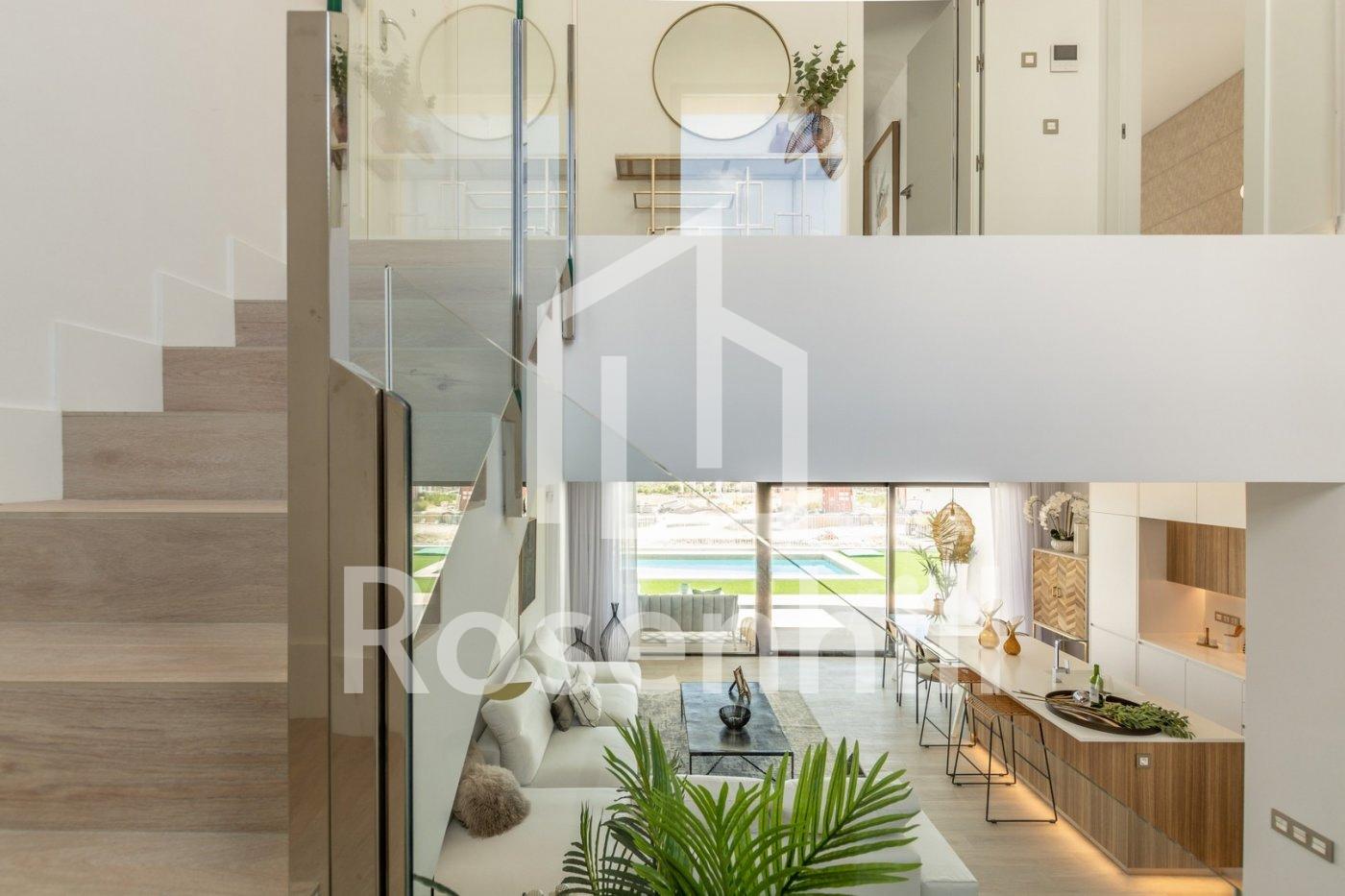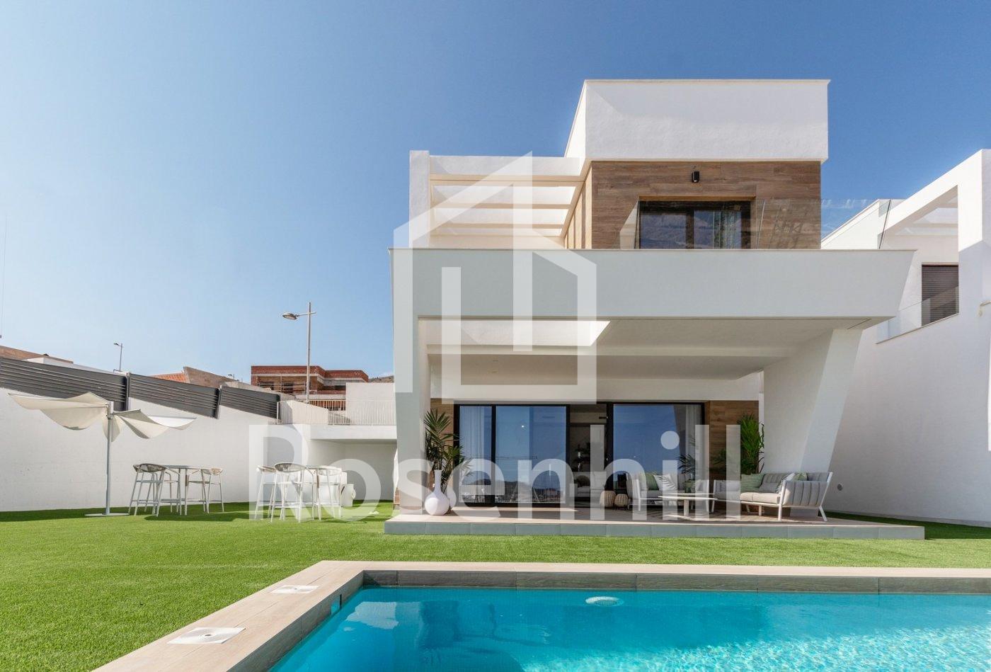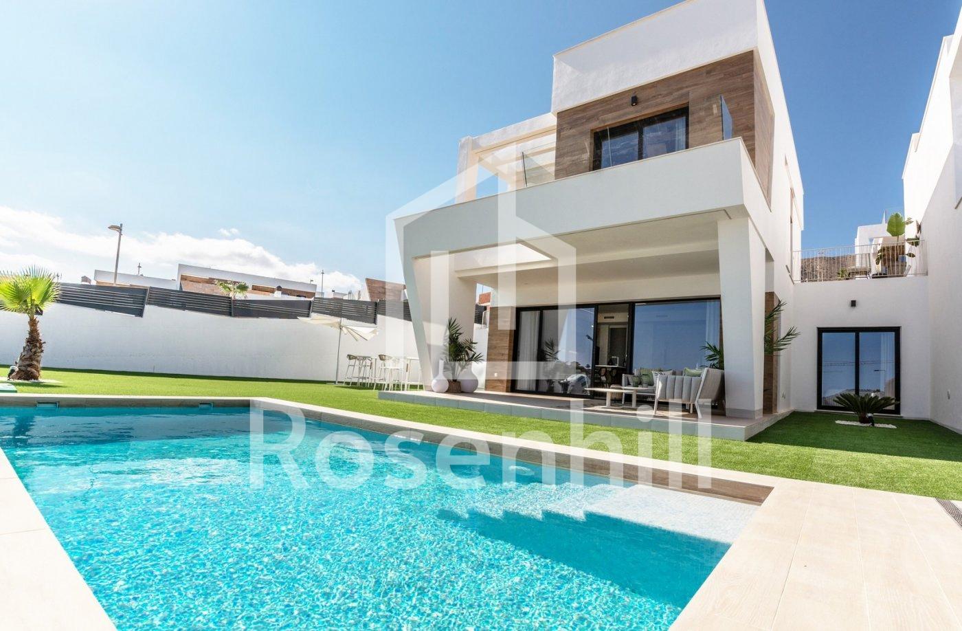 NEW BUILD VILLAS WITH PRIVATE POOL AND GUEST HOUSE New Build an exclusive residential complex of villas located in Finestrat close to the marvellous beaches of Benidorm. New model of beautiful villa with a guest house on the plot. There are 17 villas of this type for sale. The villa is built on two floors. On the ground floor, there is a bright living room, with large windows and direct access to the pool and garden, bedroom and bathroom. On the first floor, there are two suite-style rooms, with access to an open terrace. A guest house is built on one level, consisting of a bedroom and a bathroom, in addition to this, there is a cozy terrace with access to the main villa, pool and garden. Residential located 5 min by car from all the services that Benidorm can offer and in an environment with an average annual temperature of 20ºC and 300 days of sunshine a year, 44 km away from Alicante airport, 3 km from the sea and 200 meters to the golf.