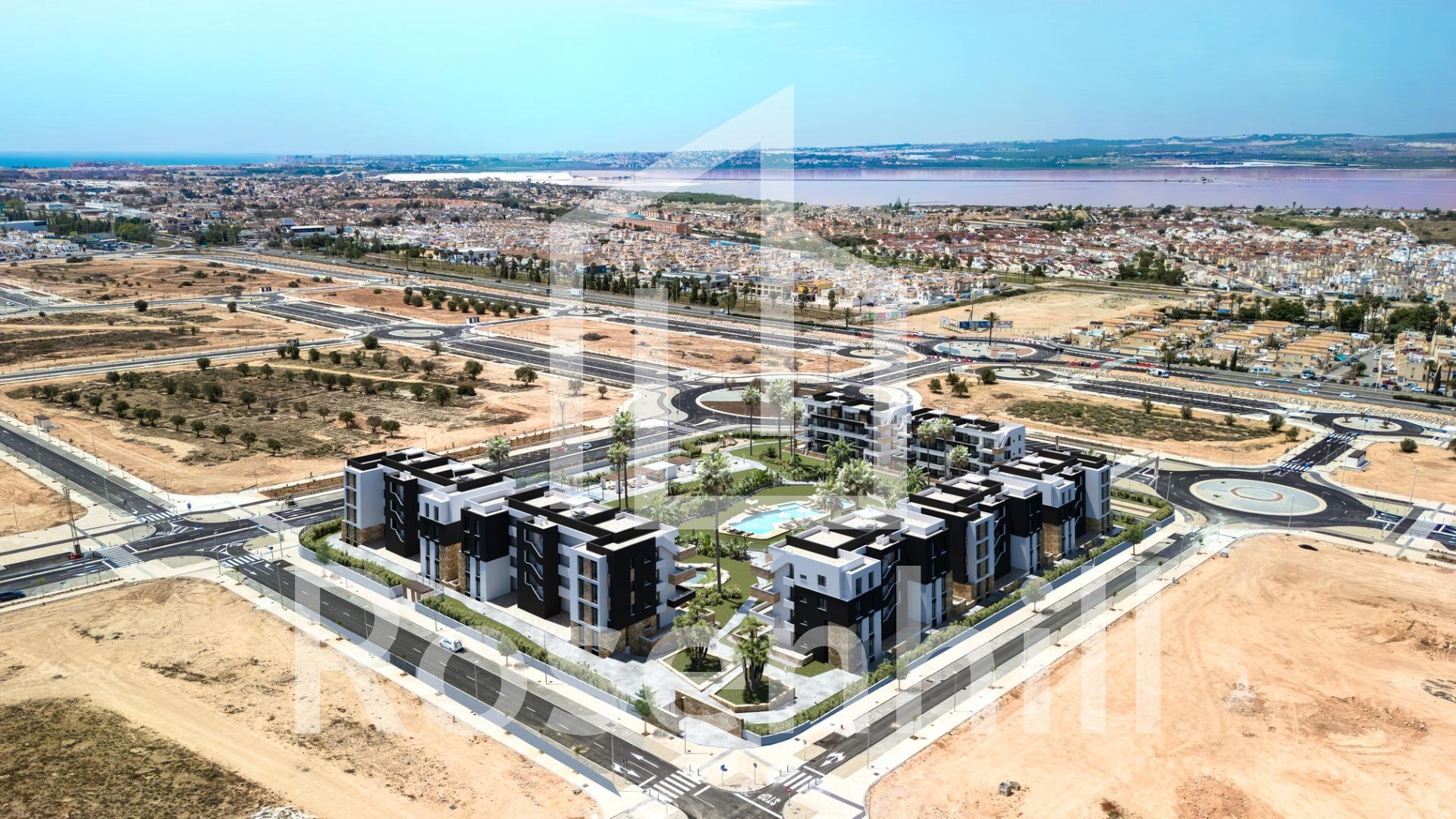 New Residential Development in La Siesta, Torrevieja Modern Apartments with Excellent Amenities This new residential development in La Siesta, Torrevieja offers spacious and contemporary apartments designed for comfort and style. The homes feature 2 bedrooms and 2 bathrooms (one ensuite) with large terraces, distributed across 7 low-rise blocks surrounding an impressive communal area. The gated community provides first-class facilities including adult and children’s swimming pools, landscaped gardens, a barbecue area, children’s playground, padel court, and petanque zone, making it ideal for both relaxation and leisure. Prime Location in the Costa Blanca Located in the growing neighborhood of La Hoya, between the natural salt lagoons of La Mata and Torrevieja, this development offers a perfect balance of tranquility and convenience. Just 3.5 km from the beaches of Torrevieja, residents will enjoy quick access to daily amenities such as supermarkets, restaurants, health centers, cycling routes, and the La Mata Natural Park for hiking. The vibrant city center of Torrevieja, with theaters, cinemas, shopping malls, hospitals, and the Aquopolis water park, is just a short drive away. Distances to Main Points of Interest Torrevieja beaches: 3.5 km La Marquesa Golf in Ciudad Quesada: 7 km Habaneras Shopping Center: 2 km Alicante Airport: 40 km Murcia Corvera Airport: 60 km High-Quality Specifications Each apartment is built with modern finishes and designed for maximum functionality: Fully equipped kitchens with appliances included Motorized shutters Reinforced security entrance door Hot water system powered by aerothermal energy Fully installed ducted air conditioning Underground parking space and storage room included As a special launch offer, the first units sold will include a complete furniture and lighting package, making your new home move-in ready from day one. A Vibrant Mediterranean Lifestyle Torrevieja is one of the most popular destinations on the Costa Blanca, offering more than 300 days of sunshine per year, cultural events, lively promenades, and excellent facilities for water sports. With its mix of traditional Spanish charm and modern amenities, it is an ideal place for permanent living, a holiday retreat, or a smart investment opportunity. Your New Home Awaits in Torrevieja This development combines luxury, convenience, and an unbeatable location by the sea. Contact us today to arrange a visit and secure your dream property in the Costa Blanca.