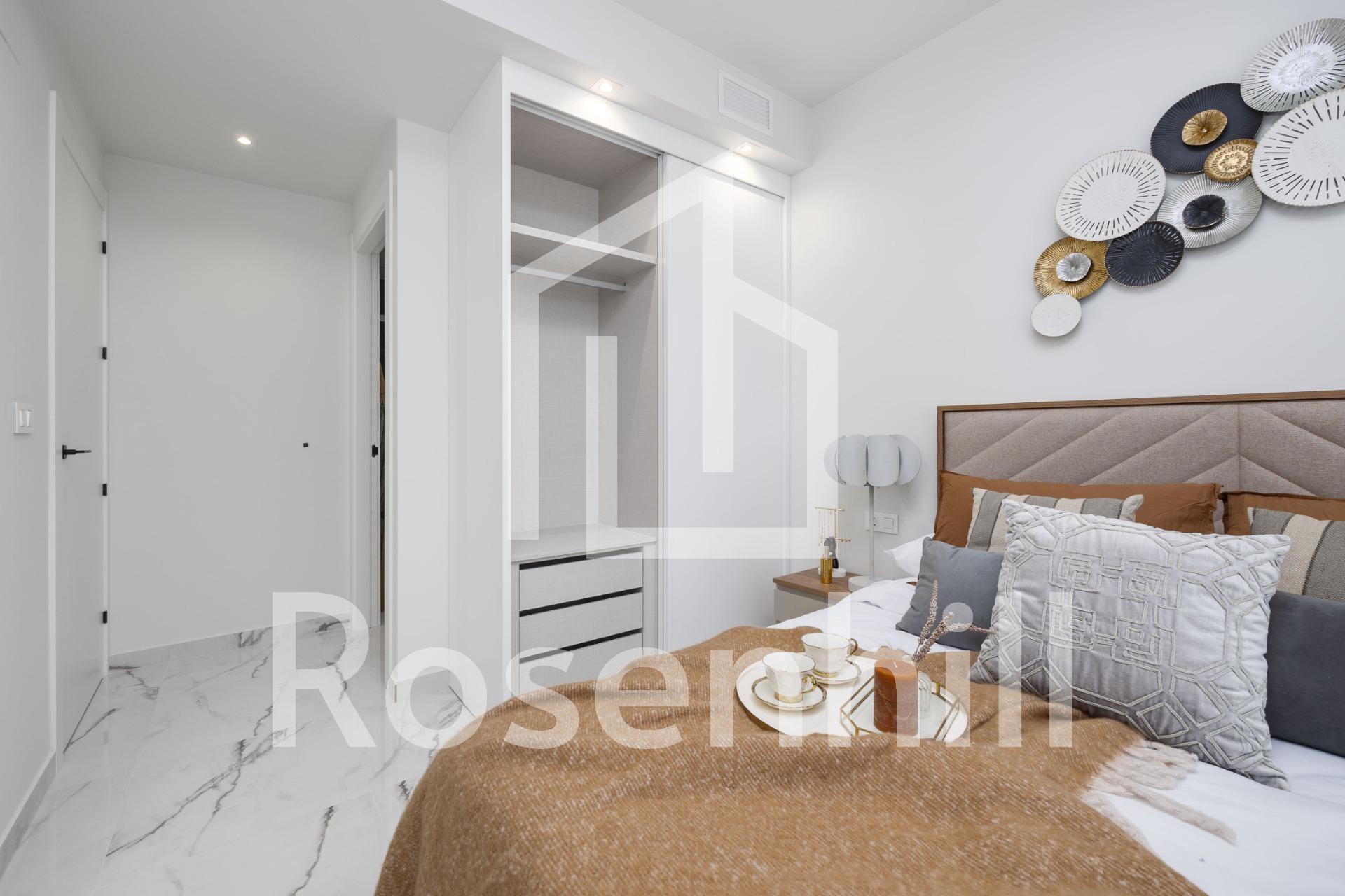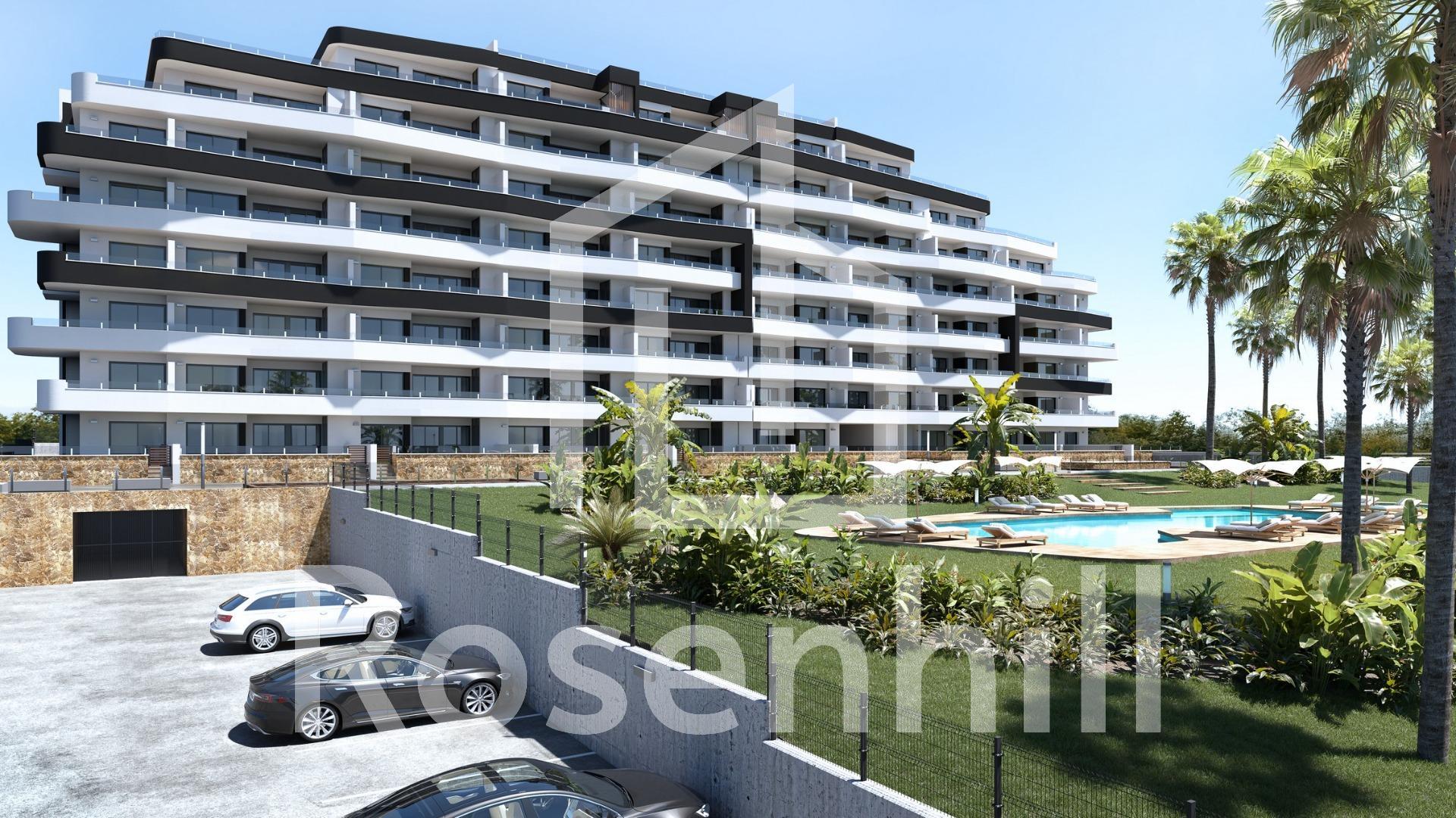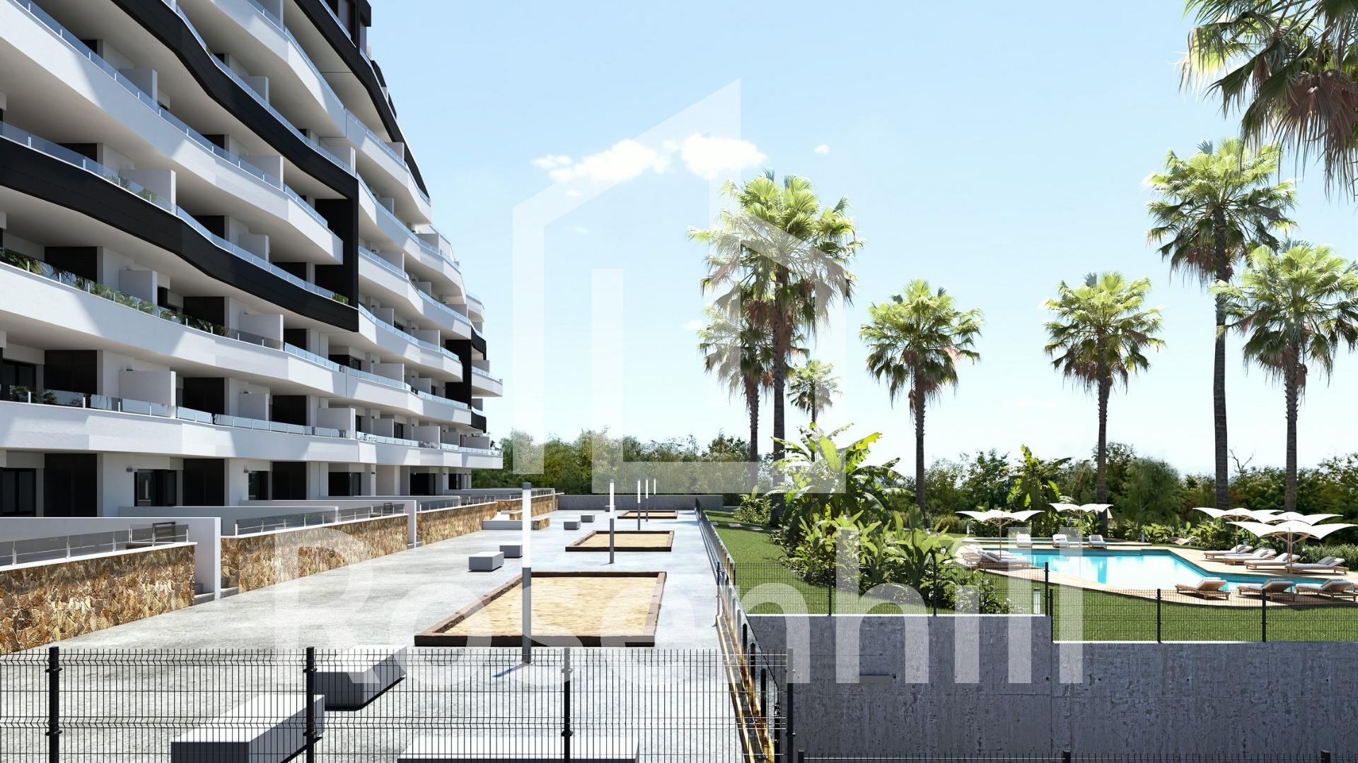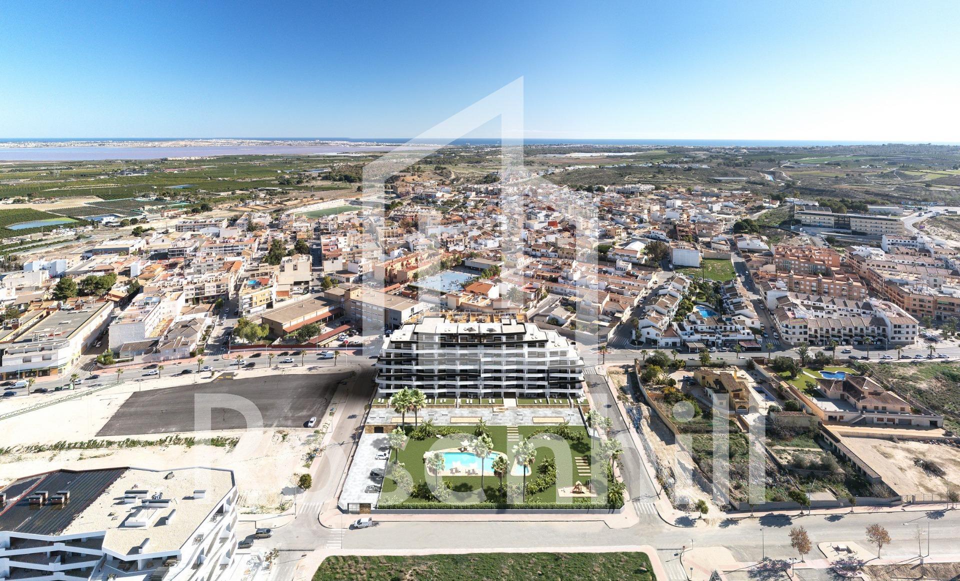 New residential development in San Miguel de Salinas, a stone’s throw from the centre Spacious apartments with impressive amenities This newly built residential complex in San Miguel de Salinas offers modern 2-bedroom apartments with spacious terraces, carefully distributed over seven floors. The gated community offers first-class facilities, including separate swimming pools for adults and children, lush green areas, a children’s playground and a petanque area. Privileged location on the Costa Blanca Nestled in the charming town of San Miguel de Salinas, this development enjoys a strategic location on the Costa Blanca. It is within walking distance of the town centre, where you will find all the essential services for daily life, including shops, restaurants and health centres. The property is a short drive from several points of interest: Las Colinas and Campoamor Golf Courses: Just 7 km away, perfect for golf lovers. Beaches of Orihuela Costa and Torrevieja: Located approximately 10 km from the residence, they offer beautiful sandy shores. Shopping Centres: Zenia Boulevard, a popular shopping destination, is only 9 km away. Alicante Airport: 50 km away. Murcia Corvera Airport: About 55 km away, ideal for regional connections. High-quality specifications Each apartment is designed with modern finishes and functionality in mind: Fully equipped kitchens with appliances included. Motorised blinds. Security entrance door. Hot water by aerothermal energy. Fully installed ducted air conditioning. LAUNCH OFFER: Furniture pack included for the first units sold. In addition, all apartments include a designated parking space. About San Miguel de Salinas San Miguel de Salinas is a picturesque municipality in the Vega Baja del Segura region, which forms part of the vibrant Valencian Community. Located near the border with Murcia, the town offers stunning views of the Torrevieja and La Mata lagoons, as well as a peaceful, family-friendly atmosphere. Your new home awaits Whether you are looking for a holiday retreat or a permanent residence, this new development in San Miguel de Salinas combines luxury, comfort and an unbeatable location. Contact us today to schedule a visit and take the first step towards owning your dream home on the Costa Blanca.