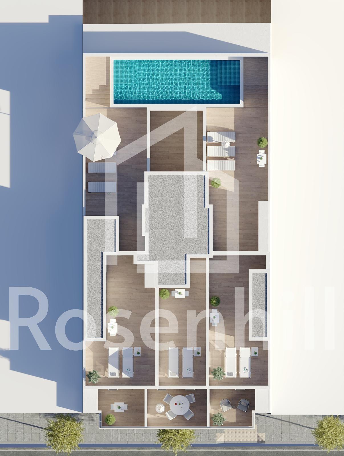 Newly built apartments in Torrevieja Just 600 metres from Playa del Cura beach Prime location in the heart of Torrevieja Discover these brand new apartments and penthouses in one of the most sought-after areas of Torrevieja, just 600 metres from Playa del Cura beach and 300 metres from the seafront promenade. Located in the city centre, this lively neighbourhood offers all essential amenities within walking distance, including supermarkets, shops, restaurants, cafés and public transport. Torrevieja is a well-known coastal town on the Costa Blanca, famous for its mild Mediterranean climate, lively atmosphere and year-round seaside lifestyle. Modern apartments with spacious layouts This exclusive new development consists of only 12 one- and three-bedroom apartments and penthouses, designed for comfort, functionality and contemporary style. The apartments on the middle floors feature spacious terraces, while the penthouses enjoy an additional private solarium, ideal for sunbathing or al fresco dining. All homes include an open-plan kitchen connected to the living-dining room, creating bright and welcoming interiors. The bedrooms have fitted wardrobes and the bathrooms are fully equipped with furniture, mirrors and shower screens. Optional parking spaces are available at an additional cost. Quality finishes and energy-efficient features The flats are built with high-quality materials and a strong focus on energy efficiency. The aluminium exterior joinery includes thermal break technology and double glazing for thermal and acoustic insulation. Motorised shutters add convenience and security. Each home has pre-installation for ducted air conditioning and heating, reinforced entrance doors and white lacquered interior doors. Hot water is produced by an aerothermal system, reducing energy consumption and improving sustainability. Roof terrace solarium with communal swimming pool Residents can enjoy an exclusive roof terrace solarium with communal swimming pool, accessible by lift or stairs. This private area is perfect for relaxing, sunbathing and enjoying panoramic views of the city. It offers a peaceful retreat above the bustling streets of Torrevieja and adds significant value to the development. Lifestyle and surroundings of Torrevieja Torrevieja is known for its extensive coastline, sandy beaches and iconic salt flats. The Lagunas de La Mata y Torrevieja Natural Park is located about 5 km away and offers hiking trails and unique landscapes. Several golf courses, such as Villamartin Golf and Las Colinas Golf, are between 12 and 18 km away. The marina and port of Torrevieja are approximately 1 km away. Alicante Airport is about 45 km away and Murcia International Airport is about 65 km away, both with excellent European connections. Your home on the coast awaits Don’t miss this opportunity to purchase a modern, newly built apartment near the beach in Torrevieja. Contact us today for more information or to arrange a private viewing.