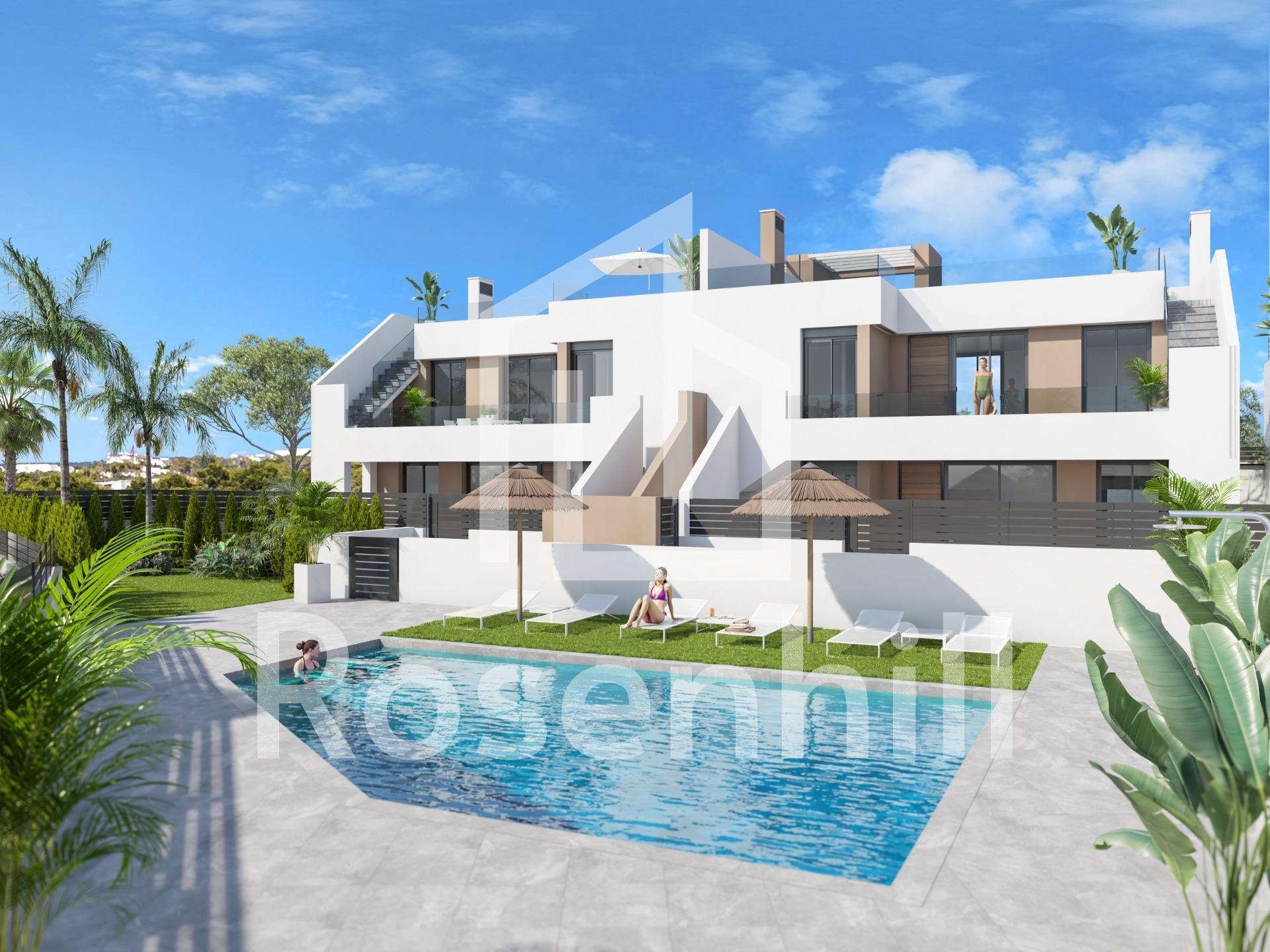 Newly built bungalows in Vera Playa, Almería: modern homes near the sea Contemporary living in Pueblo Salinas, just 2 km from the beach We are proud to present an impressive new residential development located in the sought-after area of Vera Playa, within the exclusive Pueblo Salinas urbanisation. This modern complex offers a privileged lifestyle just 2 km from the beaches of Vera (Almería), with spectacular sea views and a peaceful Mediterranean setting ideal for year-round living or enjoying your holidays. Elegant homes with modern comfort and style This new development consists of 18 high-quality bungalows. Choose from 2 or 3 bedroom layouts designed with functionality, comfort and style in mind. Options include: Ground floor with private gardens Upper floors with large solariums including summer kitchen and pergola with solar panels. All homes feature: Fully equipped open-plan kitchens with integrated fridge, dishwasher, induction hob, oven, microwave and extractor hood Bright, open-plan spaces with LED lighting throughout the home (except in the bedrooms) Motorised aluminium blinds in the bedrooms Bathrooms with modern finishes, including towel heaters, glass-enclosed shower trays and built-in furniture Pre-installation for ducted air conditioning Aerothermal system for efficient hot water production Security entrance door Exceptional community services Residents will enjoy access to a wide range of services designed to enhance comfort and leisure, including: Communal outdoor swimming pool perfect for the summer months Private parking space and storage room included with each property Prime location with excellent connections Vera Playa is a popular coastal destination known for its wide sandy beaches and relaxed lifestyle. The location of the development offers easy access to essential services and attractions: Beach: 2 km Desert Springs Golf Resort: 8 km Vera town centre: 5 km Garrucha marina and restaurants: 6 km Mojácar Retail Park: 10 km Almería Airport: 85 km (1 hour by car) Make Vera Playa your new home Whether you are looking for a permanent residence, a holiday retreat or a smart investment, these newly built apartments offer unbeatable value in one of the most sought-after areas of the Costa de Almería. Contact us today for more information and to schedule your visit.