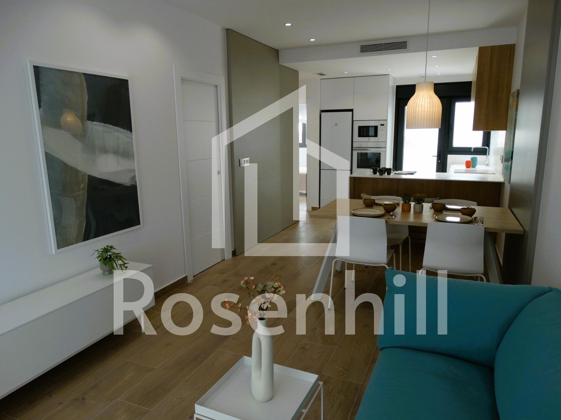 Newly Built Bungalows with Solarium or Garden in Pilar de la Horadada Modern Residential Development on the Southern Costa Blanca Located in the charming municipality of Pilar de la Horadada, this new residential development of bungalows offers a comfortable, Mediterranean lifestyle in one of the most attractive areas of the Costa Blanca. Pilar de la Horadada is known for its welcoming atmosphere, excellent climate and extensive sandy beaches such as Las Higuericas and Mil Palmeras, ideal for enjoying with the family or practising water sports. Layout and Types of Properties The complex consists of 28 modern bungalows available in 2 and 3 bedroom versions, distributed as follows: Ground floors with private garden Upper floors with private solarium and assigned storage room Many of the properties are south-facing, ensuring excellent natural light, and offer views of the communal pool or the adjacent park. Functional and well-equipped spaces Each property has been designed with spacious and functional spaces: Open-plan kitchen with large living-dining room Built-in wardrobes Private terrace in each unit Parking space included In addition, the properties feature: Hot water via aerothermal system Pre-installation of air conditioning PVC exterior carpentry with double glazing and aluminium shutters Bathroom furniture included Communal Areas and Natural Environment The residential complex includes a communal swimming pool surrounded by green areas, perfect for enjoying the sun and tranquillity. Just 4 km from Las Higuericas Beach, it can be easily reached on foot or by bike along the pleasant promenade that connects to the sea. Excellent location and connectivity The location of the residential complex allows access to all kinds of services and points of interest: Supermarkets, shops, bars and restaurants less than 1 km away Golf courses such as Lo Romero 6 km away Dos Mares shopping centre 11 km away Mil Palmeras and Torre de la Horadada beaches just 5 minutes away Murcia (Corvera) airport 40 km away Alicante Airport 65 km away Your New Life in the Sun This residential development in Pilar de la Horadada represents an excellent opportunity to enjoy Mediterranean living in a modern and well-located property. Contact us today for more information or to arrange a viewing and take the first step towards your new home on the Costa Blanca.