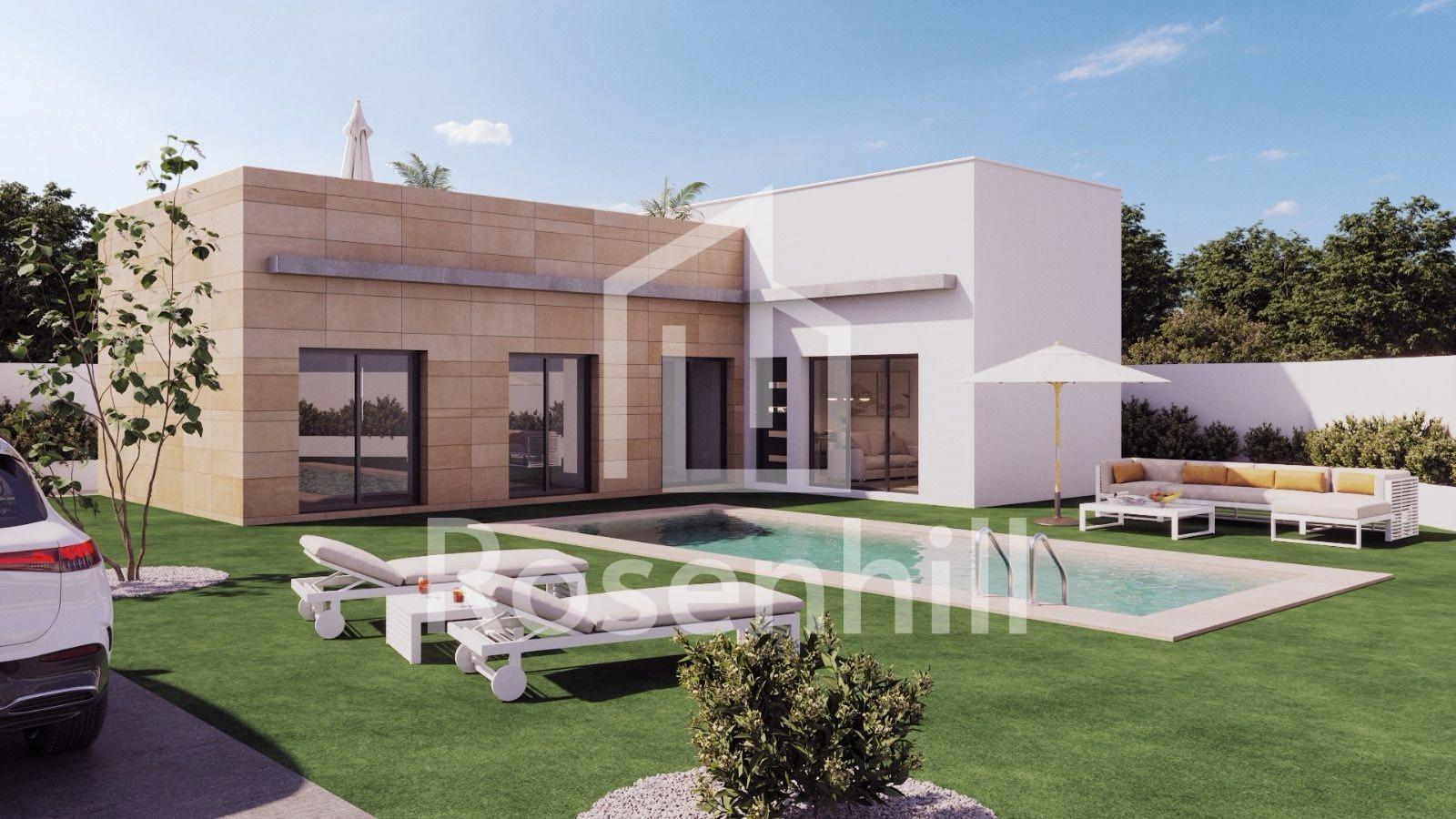 Newly built detached villas with private pools in the Mazarrón Country Club Modern villas in a quiet residential setting Discover this exclusive development of detached villas located in the Mazarrón Country Club area of Murcia. Set in a quiet residential setting and surrounded by nature, this location offers the perfect balance between tranquillity and accessibility. The Country Club is known for its relaxed atmosphere, wide streets and proximity to both the coast and the town of Mazarrón, making it an attractive option for permanent living or holidaying. Single-storey design with private outdoor spaces Each villa is carefully designed on a single storey, offering comfort and ease of living. The layout includes three spacious bedrooms and two bathrooms, one of which is en suite. The master bedroom has a walk-in wardrobe. The bright open-plan living area combines the lounge, dining room and kitchen, with direct access to the terrace and garden. Large windows allow natural light to flow throughout the house and create a seamless connection between indoor and outdoor living. The private garden features a private swimming pool and a terrace ideal for sunbathing or al fresco dining. Each property also includes parking within the plot, ensuring convenience and security. Private solarium with open views Accessible via an external staircase, the private rooftop solarium offers an additional outdoor area to enjoy the Mediterranean climate all year round. The solarium is equipped with water and electricity connections, allowing for the future installation of a summer kitchen, outdoor shower or relaxation area. This elevated space is perfect for relaxing, entertaining guests or enjoying the panoramic views of the surrounding landscape. High-quality finishes and modern comfort These newly built villas are constructed with high-quality materials and modern finishes to ensure durability and comfort. Features include fitted wardrobes in all bedrooms, pre-installation for ducted air conditioning, and pre-installation for the kitchen, offering buyers the opportunity to customise the interior to suit their personal style. The contemporary design and practical layout make these homes suitable as a permanent residence, holiday home or smart investment. Convenient location near Mazarrón and the coast The development is located approximately 9 km from the beaches of Mazarrón and only 5 km from the town of Mazarrón, where all essential amenities can be found, including shops, restaurants, medical centres and schools. The area also benefits from easy access to the motorway, allowing for smooth connections to nearby towns and cities. Key distances to points of interest Town of Mazarrón: 5 km Beaches of Mazarrón and Bolnuevo: 9 km Mazarrón marina: 14 km Golf courses: 20 km Murcia Corvera Airport: 45 km Cartagena town: 35 km Your new home on the Costa Cálida Enjoy privacy, comfort and outdoor living in one of these exclusive new-build villas at Country Club Mazarrón. Contact us today for more information or to arrange a viewing and secure your place in this attractive residential area.
