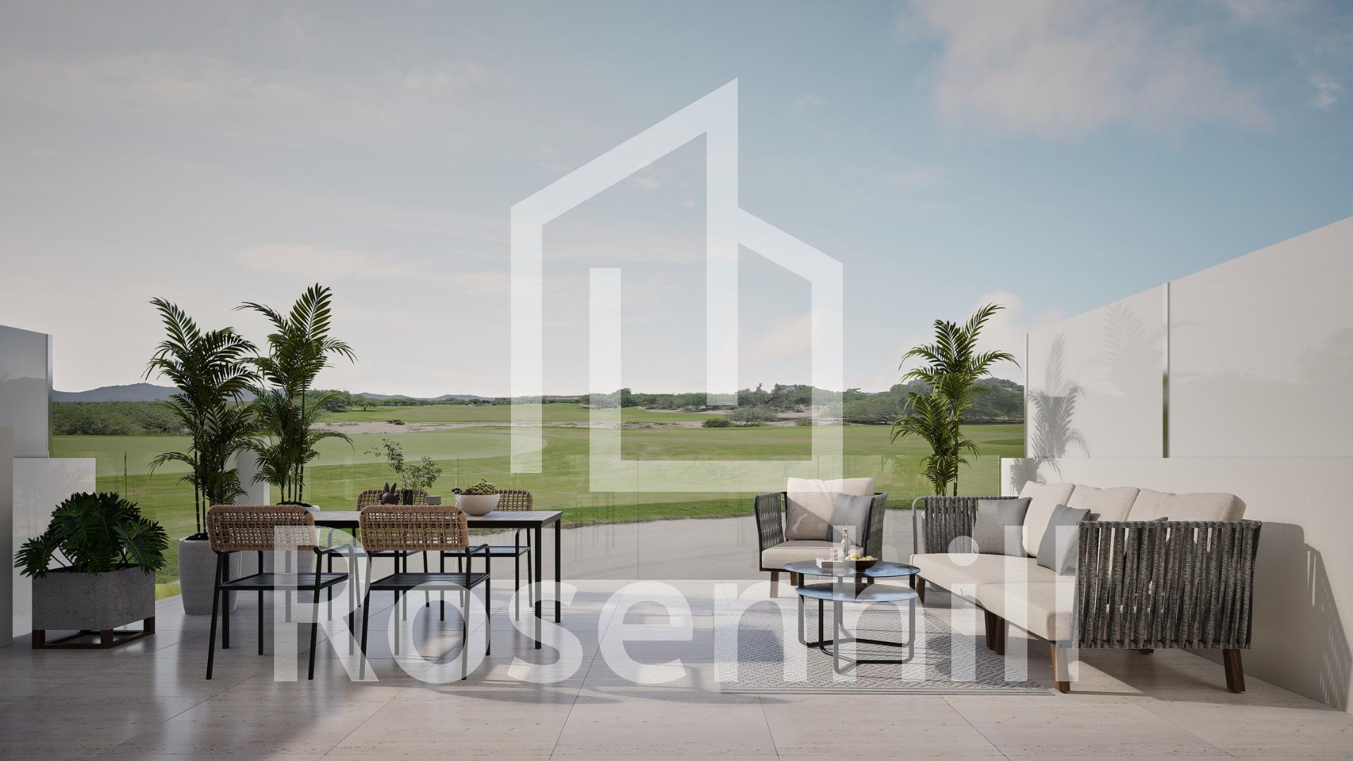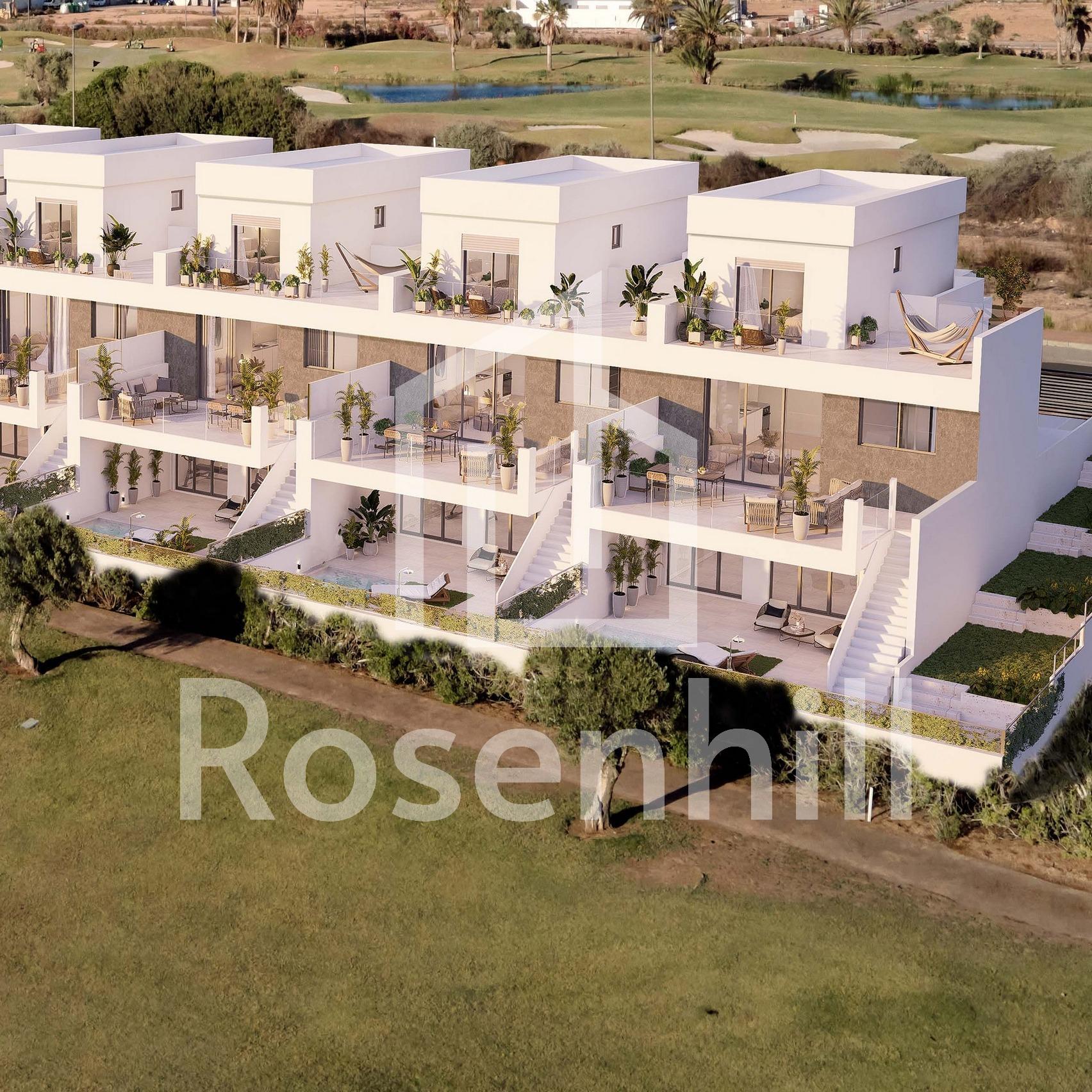 Newly built semi-detached and detached villas in La Serena Golf-Los Alcázares Discover your dream home in these stunning semi-detached and detached villas located on the front line of La Serena golf course in Los Alcázares, where modern living meets breathtaking golf views. These meticulously designed 3-bedroom, 4-bathroom homes are perfect for families seeking luxury, comfort and a touch of Mediterranean charm. Bedrooms and Bathrooms: Three spacious bedrooms, designed with comfort in mind. Each bedroom has built-in wardrobes, ensuring ample storage space. Four contemporary bathrooms with high-quality fittings and finishes. A cosy open-plan kitchen and living room, ideal for entertaining and family gatherings. Spacious living room with large windows that bathe the space in natural light and offer stunning views of the golf course. A generous basement that can be used as a recreation area, home gym, or additional storage. Dedicated parking space for secure parking and convenience. Private swimming pool surrounded by a beautiful garden, perfect for relaxing and enjoying the sun. Large terrace for al fresco dining and entertaining, with picturesque views of the golf course. Air conditioning and heating installed for year-round comfort. Proximity to local amenities, including shops, restaurants and, of course, world-class golf courses. Los Alcázares is known for its beautiful beaches, vibrant community, and a wealth of outdoor activities. The location offers a perfect balance of tranquillity and accessibility, making it an ideal place for both tourists and year-round residents. This property is a perfect blend of modern architecture, comfort and leisure. Don’t miss the opportunity to own a piece of paradise in Los Alcázares!