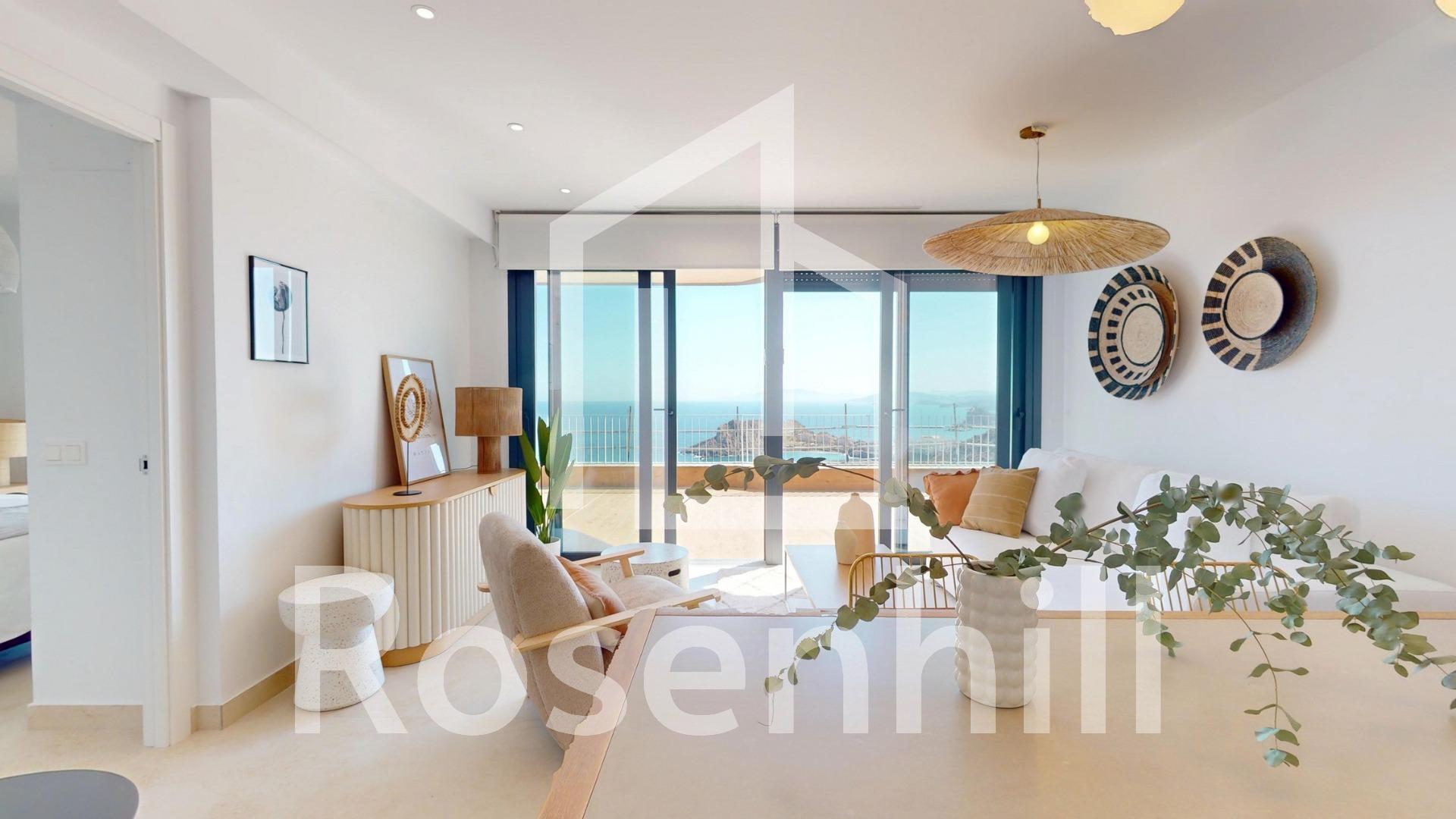 THE TRANQUILITY OF THE SEA IN YOUR HOME !!! 1, 2 and 3 bedroom apartments, penthouses and duplexes with spectacular terraces. First line of the sea on a hill in front of the Isla del Fraile in Águilas. Its design and architecture is integrated into the beauty of the natural environment where it is found, respecting and enriching it. Thanks to their elevated location, the homes have been designed to make the most of natural light and to offer spectacular views of the Mediterranean Sea from their large terraces. The noble materials, the use of the morphology of the mountain and the large amount of vegetation achieve a perfect harmony between the homes and the natural environment where it is located. The residential is located in the Isla del Fraile Resort, which has sports areas, restaurants and private security. A few minutes away are commercial areas with a supermarket, restaurants, cinemas and all the services offered by the city of Águilas. The city of Águilas has 28 kilometers of coastline in which there are 35 beaches with different types of sand thickness located in different landscapes, from coves and virgin beaches in natural settings to the urban beaches of the town of Águilas. Its warm desert climate is present all year round with an annual average of 22º with mild temperatures in winter and very hot in summer. Águilas is a perfect enclave for diving, water sports, hiking and golf.